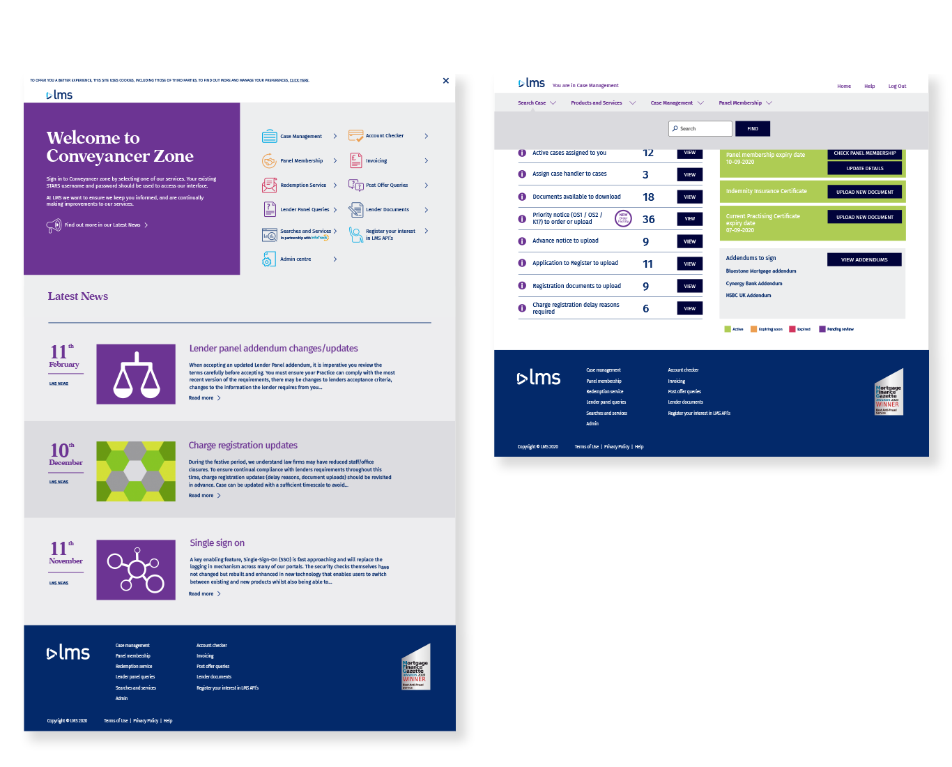 'Conveyancer Zone' was part of the LMS product suite that really needed a revamp not just in look and feel, but in service offering to allow them to easily access the growing list of services offered by LMS and to interact with the lender.