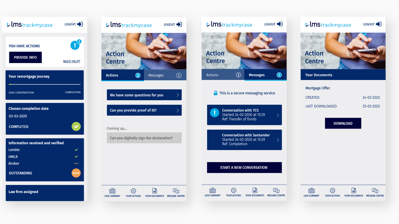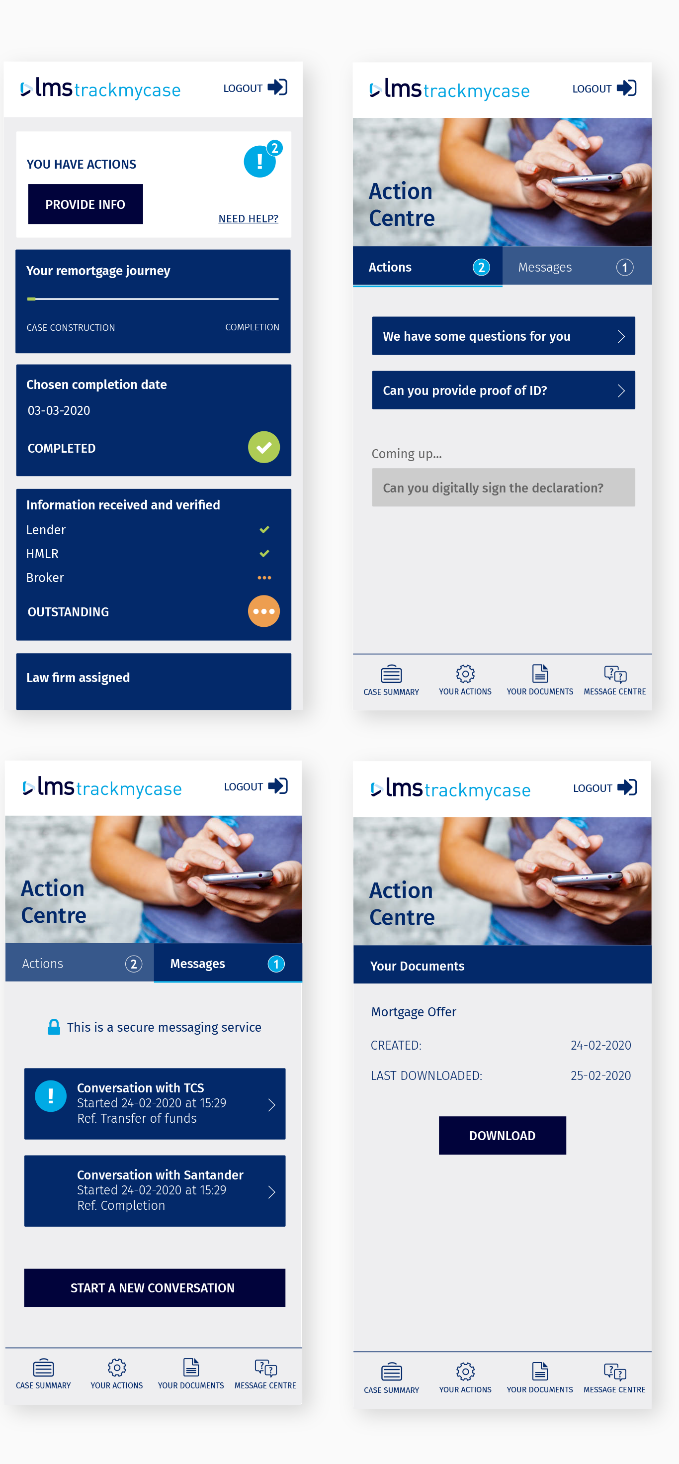 LMS required a mobile first customer facing portal for borrowers to manage their remortgage with their lender and check on progress with their law firm.